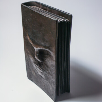 Die Idee zu so einem „magischen Buch“ kam mir tatsächlich sehr spontan und wurde auch direkt umgesetzt. Mir war es wichtig der Skulptur einen mystischen, geheimnissvollen Ausdruck zu verleihen. Durch die dunkle Färbung des Stahls hat es auch etwas düsteres. Fast als würde der Inhalt von bösen Flüchen bewacht werden.