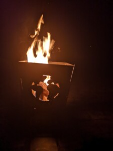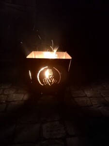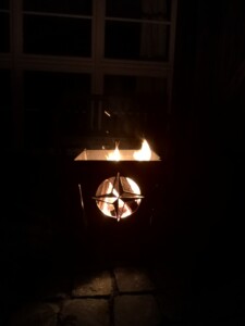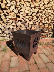 Der Feuerkorb lässt sich komplett zerlegen und flach aufeinander stapeln. Die einzelnen Platten wurden mit individuell gewünschten Motiven durchbrochen, welche im Feuerschein besonders zur Geltung kommen.